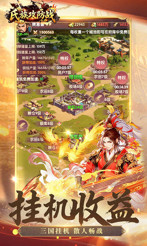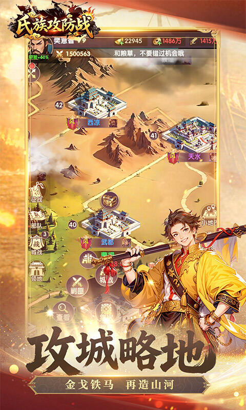 《氏族攻防战》是一款以东汉末年三国纷争为背景的多人在线策略国战游戏,玩家将化身为一方诸侯,在群雄割据的乱世中崛起,通过招募历史名将、发展城池经济、运用兵法策略,最终从诸多势力中脱颖而出,实现统一天下的霸业宏图。